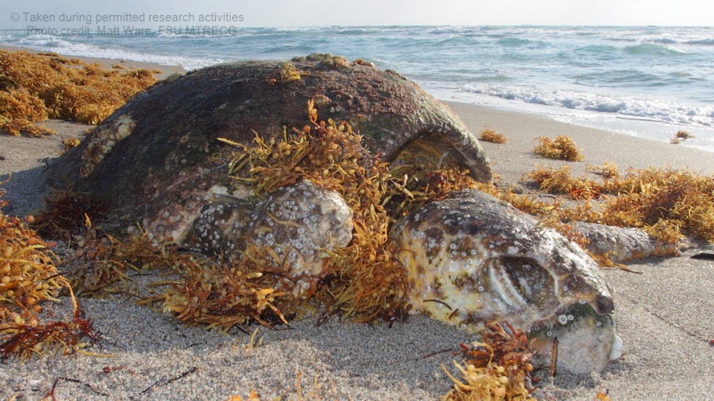 Sea turtles are ectothermic – meaning they do not generate their own body heat like we do. Instead, they rely on their surrounding environment to keep their bodies within a reasonable temperature. In many cases, if the water conditions become uncomfortable, sea turtle can simply move to another location such as deeper water or further south. But, if the conditions change too quickly or the turtles can’t otherwise move, the turtles are forced to hunker down. If the water temperature drops below approximately 50°F (10°C), their metabolism slows to a crawl and they become lethargic or “cold stunned”. If they stay in this state too long or their body temperature continues to drop, cold stunned turtles can die due to hypothermia, drowning, or predation. This temperature threshold is approximate because sea turtle temperature tolerance varies widely across species and body sizes. For instance, the leatherback sea turtle (Dermochelys coriacea) can survive in waters just above freezing through some unique physiological adaptations!
